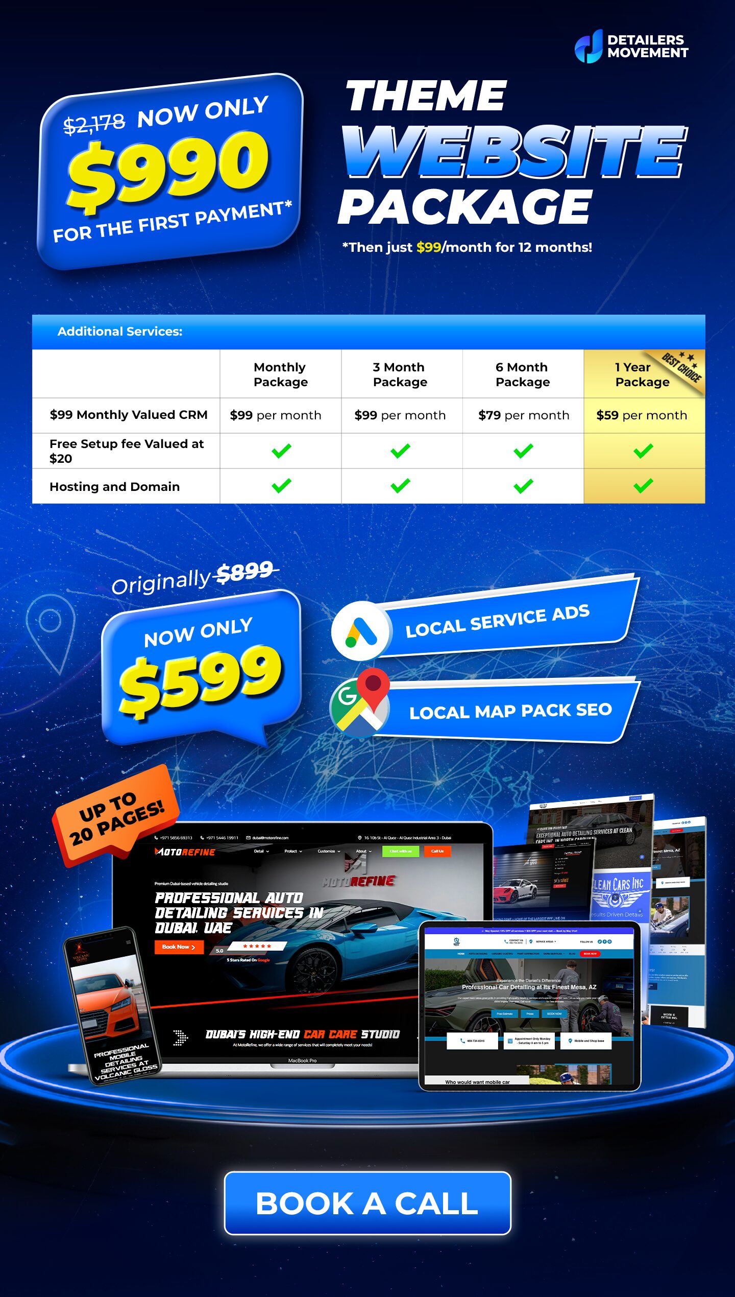 I have been working with the team at Detailers Movement for 4 years now, amazing team – incredible results in terms of my website leads, SEO and ads – i could not have wished for a more hard working team – you would be a fool not to work with them to grow your detailing or film business.